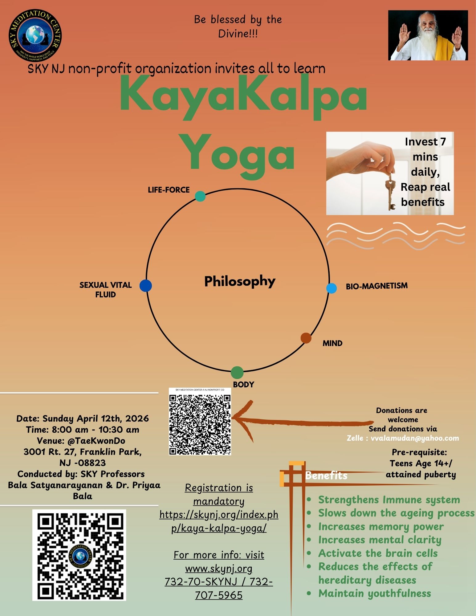 Click Link to Register Kaya Kalpa Yoga session on Sunday, Apr 12th, 2026.
